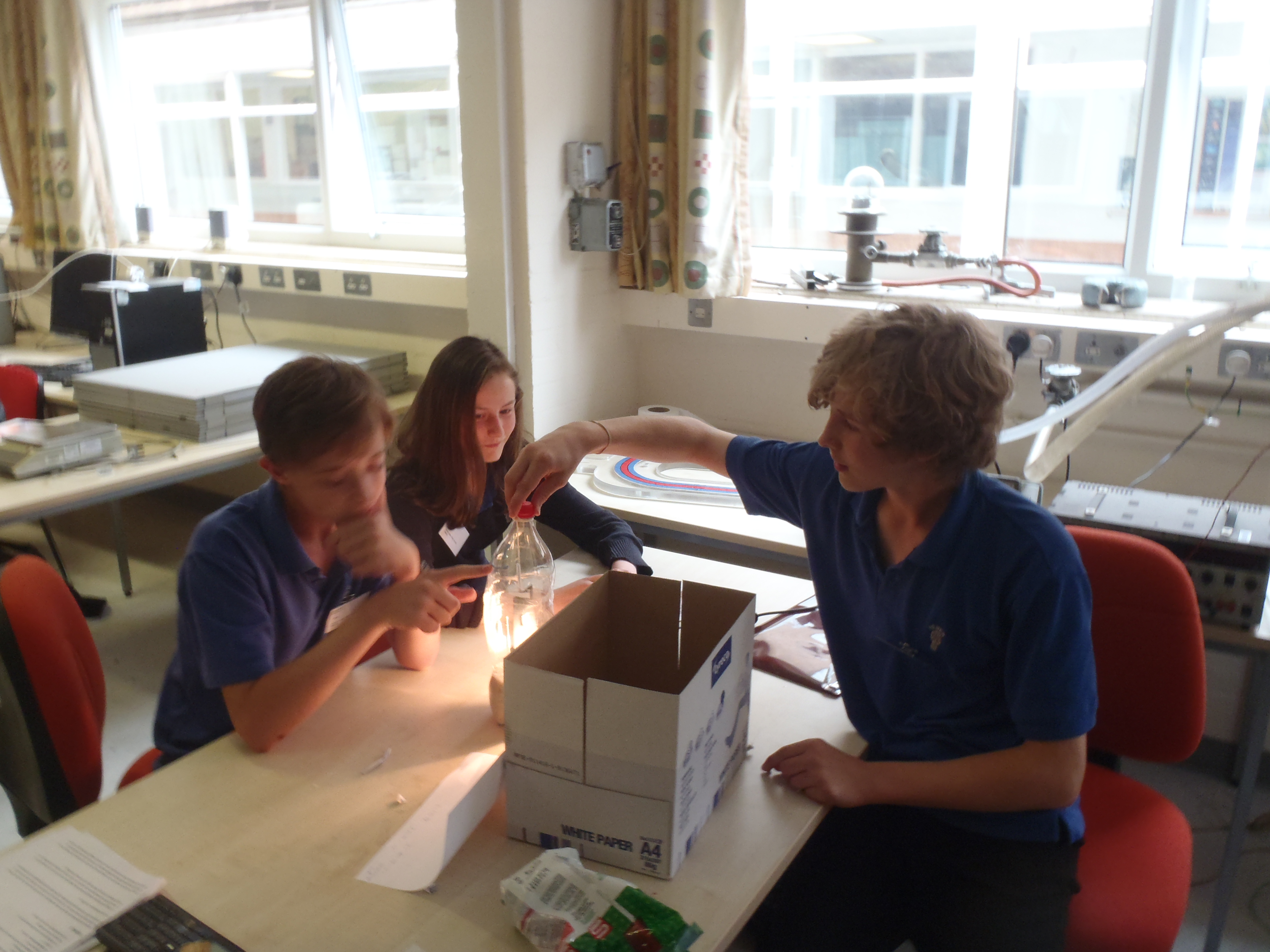 In the second session students were able to make their own magnetometer, albeit a much more basic version of the one we are installing at school, made from a fizzy drinks bottle, rice, a mirror, string and a magnet. Our Heber leaders immediately saw an opportunity for this activity to be used in science club with years 7 and 8 next year.