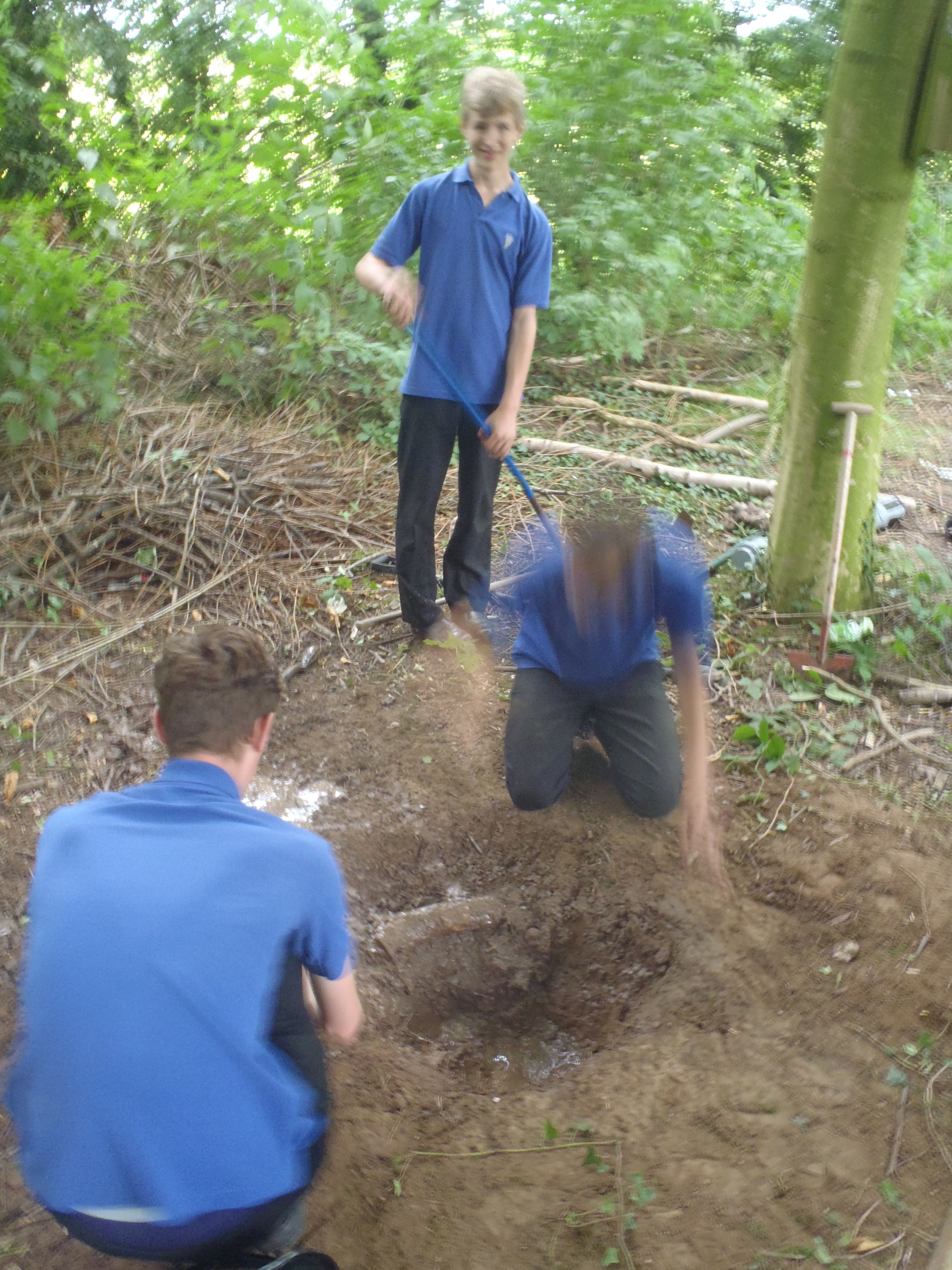 Four students met up after school on Wednesday 16 July, and started to dig a hole to bury the magnetometer in (it is enclosed in a drain pipe but still needs to be buried in order to reduce temperature variations at the sensor which would affect readings). After two hours, they had dug down to about 60 cm—20 cm short of the required depth—with progress being slow owing to tree roots and rubble from when the languages college was built.